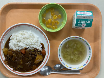 ハヤシライス・キャベツスープ・フルーツサワー・牛乳