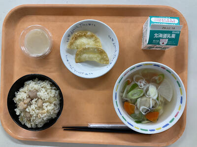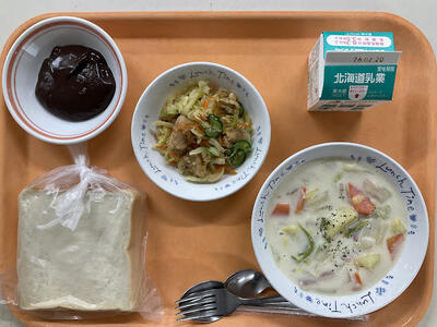 とりめし・たらの三平汁・揚げチーズ・手作りカツゲンゼリー・牛乳
